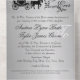 Conte de fée enchanteur faire-part de mariage triple avec une carriole tirée à cheval antique et coeurs avec monogramme dans un gris argenté.