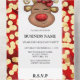 Une façon merveilleuse de célébrer votre fête de fin d'année en famille; amis et invités avec cette version polyvalente deux dans un invitation avec la section déchirure rsvp. Un motif rayé rouge foncé et éclatant est posé sur un arrière - plan rouge plus clair rempli d'élégants confettis de parties scintillant brillant en faux or qui forme une bordure autour d'une magnifique illustration de la tête d'un renne de dessin animé portant un arc de parties scintillant rouge dans ses cornes. Elle a un nez de parties scintillant rouge éclatant et de faux cornes de parties scintillant d'or et est fixé contre un arrière - plan blanc qui fait sa pop. La partie inférieure rsvp peut être utilisée telle quelle ou modifiée pour répondre à vos besoins. Les utiliser pour les besoins en repas; cartes recettes de biscuits ou recettes de cocktails de vacances.