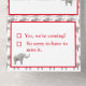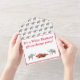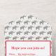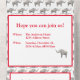 Le design offre de la place pour les informations sur l'invitation de la partie White Elephant, comme où, quand, "Ground Rules" pour jouer, ainsi qu'une carte de déchirure séparée pour répondre. Tout le texte est en rouge. Un motif d'éléphants blancs orne l'arrière - plan.