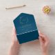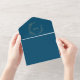 Cette feuille d'or minimaliste et mariage bleu dans une seule invitation est parfait pour un mariage élégant. Le design se compose d'une simple silhouette de verdure en feuille d'or imitation avec un style minimaliste classique sur un arrière - plan bleu. Écrivez vos adresses d'invités à l'arrière de l'invitation pliée, ou achetez les autocollants de étiquette de adresse d'invités de coordination (vendus séparément).