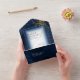 Un arrière - plan d'aquarelle dans les tons du bleu royal à la marine est surmonté d'une abstraite de lignes dorées fines et d'effets lumineux scintillants pour créer les pièces de cette belle suite mariage. La carte combinée faire-part de mariage et RSVP présentée ici présente également du texte non centré et un beau dégradé pour contenir tout votre texte. Ajoutez facilement vos propres noms, date mariage et détails de l'événement à l'aide du modèle fourni. Recherchez ID867 pour voir d'autres pièces et choix de couleurs pour cet ensemble.