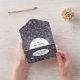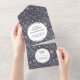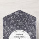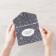 Délicats dessins de fleurs botaniques en blanc sur un arrière - plan en damier gris foncé pour une ambiance florale moderne. Une magnifique coordination tout en une seule invitation que vous pouvez modifier pour convenir à votre célébration. La partie inférieure peut être arrachée à R.S.V.P. par la poste.