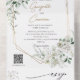 Lush White Flowers QR code All in One All in One Invitation. Une invitation élégante qui combine la simplicité des fleurs blanches avec l'allure des détails géométriques en or, parfait pour les mariages et les occasions spéciales qui demandent une touche de beauté et de grâce", il est facile de customiser pour correspondre à vos couleurs mariages.