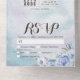 Invitation Tout En Un Fleurs Boho Bleu Plumes Bois rustique Mariage RSVP