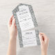 Le tout dans un faire-part de mariage tri-plié avec des fleurs d'art blanc sur un arrière - plan vert/gris sage. combinaison faire-part de mariage, carte rsvp et enveloppe.