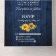 Invitation Tout En Un Fleurs de soleil en bois bleu rustique Mariage