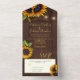 Invitation Tout En Un Fleurs de soleil en or rustique mariage