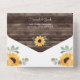 Ce Mariage rustique de tournesol et de cordes Eucalyptus tout en un faire-part de mariage avec RSVP est parfait pour une grange ou un mariage de ranch. Cette invitation présente des tournesols jaune aquarelle avec respiration pour bébé et de la végétation sauge d'eucalyptus sur un arrière - plan en bois marron avec des lampes à cordes. C'est un jeu de couleurs parfait pour un été ou un mariage de automne Fabriquez cette invitation vous-même en incluant vos noms et tous vos détails mariages et votre propre photo. Pour plus de personnalisation, cliquez sur le lien "customiser plus" et utilisez notre outil de conception pour modifier ce modèle.