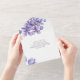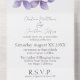 Ce faire-part de mariage est doté d'un design tout-en-un avec une carte R.S.V.P. incluse en bas. L'arrière - plan est un blanc simple et élégant avec des fleurs lilas violettes couleur aquarelle bordant le haut et le bas.