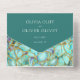 Mariage photo All In One Invitation avec motifs floraux, fleurs de couleur turquoise avec stries en feuille dorée. Belle Faire-part de mariage florale artistique. Faire-part de mariage d'aquarelle vintage. Turquoise et Golden Collection.