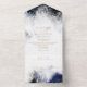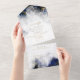 Invitation pliable triple pour réception de mariage et RSVP tout-en-un - Beau cristal de géode de pierre précieuse Lapis Lazuli bleu royal accentué de veines de pépite d'or marbré scintillant et de cristal de quartz - envers coordonné.