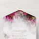 Carton d'Invitation Tri-plié Tout-en-Un pour Réception de Mariage et RSVP - Superbe géode de cristal de tourmaline rose accentuée de veines de pépite d'or marbré scintillant et cristal de quartz - envers coordonné.