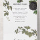 Un design gothique mariage de scénario Halloween avec des roses noirs et des vignes pendantes. Un design d'Halloween blanc qui utilise des fleurs botaniques noires et foncées avec des typographies de calligraphie vintages. Un design gothique élégant idéal pour les thèmes mariages d'Halloween. Un code QR mariage rose noir unique tout en un seul design faire-part de mariage. Des articles de papeterie mariage correspondants sont également disponibles.