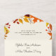 Cette faire-part de mariage colorée présente des feuilles d'automne dessinées à la main dans un style douloureux autour des détails de votre mariage. C'est l'invitation parfaite pour un mariage de automne.