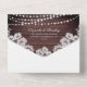Faire-part de mariage rustique TOUT EN UN avec carte de réponse RSVP perforée facile à détacher et conception pliable, facile à sceller et à envoyer, donc aucune enveloppe n'est nécessaire pour l'expédition et pratique pour les invités pour répondre par courrier. Beau bois de campagne avec des guirlandes lumineuses et de la dentelle blanche. Tout le texte est modifiable pour changer la formulation selon vos besoins. Contactez le concepteur via Zazzle Chat ou makeitaboutyoustore@gmail.com si vous souhaitez que ce design soit modifié, sur un autre produit ou des articles coordonnés.