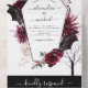 Halloween 31 Octobre Automne Automne Couleur d'eau foncée Bourgogne et Noir Mariage Invitations - comprend hantante et effrayante typographie de script élégant avec des Fleurs modernes, Araignées, Cobwebs et Bat Wings pour la célébration spéciale de mariage Déplaisant.
