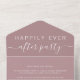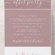Élégant rose poussiéreux ou faire-part mariage privé et réception dans une seule invitation à annoncer votre mariage à la famille et aux amis et à les invitation à une réception ou une fête post-mariage. "Happily Ever After Party" écrit dans un mélange de typographie blanche simple et d'un script blanc tendance avec des swashes. Une carte postale RSVP détachée offre une réponse commode, écologique et sans enveloppe de la part de vos invités.