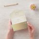 Elegant ivory and gold all-in-one wedding invitation with delicate floral details and monogram. This eco-friendly design doubles as an envelope and features a built-in QR code for easy RSVP and wedding website access. Perfect for modern couples who love timeless luxury and convenience. Printed on premium paper with shimmering gold floral accents — no separate envelope needed.