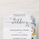 Faire-part de mariage tout-en-un avec jolies fleurs de jardin et typographie élégante. L'invitation comprend une carte RSVP perforée avec les détails de votre site Web mariage et le code QR. Conçu par Thisisnotme©