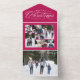 Envoyez un de nos salutations de Noël avec ce carte photo de vacances unique. Doté d'un élégant traitement de type disant "Joyeux Noël" avec un collage de sept photos, ce design comporte également une section détachable avec une seule photo. Inclure une mise à jour de famille au dos. Mais surtout, cela peut être plié et envoyé sans enveloppe ! La couleur arrière - plan magenta rose vif est joyeuse et festive, mais d'autres couleurs sont disponibles dans la collection.