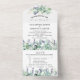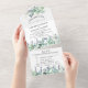 Eucalyptus feuilles et lavande aquarelle, forêt naturelle sauge, moderne tout en une invitation de mariage. Aquarelle tendance, rustique, verdoyante, invitations de mariage. Customisez avec vos détails. Commandez à temps pour éviter une déception.