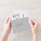 Des textes manuscrits élégants et des accents de brosse sont utilisés pour créer les pièces de cette belle suite mariage moderne. L'invitation tout-en-un du mariage et la carte RSVP indiquent ici un arrière - plan gris optionnel au verso. Ajoutez facilement vos propres noms et les détails de l'événement en utilisant le modèle fourni. Recherchez ID940 pour voir d'autres pièces et choix de couleurs pour cet ensemble.