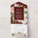 Invitation Tout En Un Magnolia blanc rose pâle Floral Bourgogne Mariage
