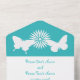 Invitation Tout En Un Marguerites et papillons en Turquoise