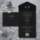 Invitation Tout En Un Mariage avec code QR monogramme noir et blanc