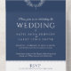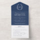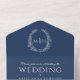 Invitation Tout En Un Mariage blanc bleu foncé ovale feuilles monogramme