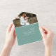 L'art botanique feuilleté vert sauge feuilleté à la main ajoute votre propre photo de couple à l'intérieur de l'invitation tout-en-un mariage. Personnalisez ce faire-part de mariage de réponse détachable avec vos propres détails de cérémonie de mariage, photo, initiales monogrammes et options de repas sur vos cartes de réponse détachables. Un simple design de feuilles vertes et des initiales monographiques cercle de feuilles. Autres couleurs et articles mariages correspondants disponibles. © Dessin et dessin de la feuille d'origine par Sarah Trett pour www.mylittleedenweddings.com sur Zazzle.