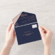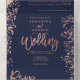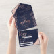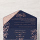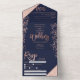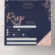 Invitation Tout En Un Mariage bleu marine confetti pailleté or rose