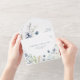 Invitation Tout En Un Mariage Bleu Poussiéreux Fleurs Sauvages Feuillage