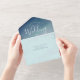 Une faire-part de mariage tout en un bleu océan. Cette invitation a un arrière - plan doux d'inspiration océanique et des lettres blanches et bleues. Cette invitation comprend une carte RSVP détachée. Ajoutez simplement vos informations, ajoutez cet invitation à votre panier et profitez de votre beau mariage. Blue Ocean Beach Mariage tout en une invitation Conception de vacances | ©Melissa Patton - Concepteur/Illustrateur