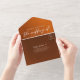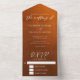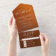 Rustique brûlé orange tout en un faire-part de mariage avec élégante typographie blanche sur le dégradé de couleur marron sur cet invitation avec carte RSVP détachable. Ces tons de terre viennent parfaitement compléter un mariage d'automne bohème minimaliste.