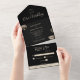 Invitation Tout En Un Mariage botanique moderne Black & Gold