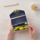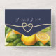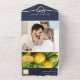 Capturez l'essence d'une élégance rustique avec notre invitation de mariage tout-en-un au fruit de citron agrume bleu marine et jaune. Le fond bleu marine classique orné de fruits d'agrumes jaunes joyeux ajoute une touche de luminosité à votre jour spécial. Au dos, vos invités trouveront une belle photo du couple, accompagnée d'un site web et d'un code QR pour une réponse RSVP pratique. C'est le mélange parfait de sophistication et de charme, invitant vos proches à partager la joie de votre célébration de mariage !