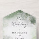 Mariage Vert Sage Thème. Design présente une belle illustration d'aquarelle peinte à la main dans les tons vert émeraude et vert sauge avec éclats de feuille de parties scintillant d'or - La calligraphie manuscrite est combinée avec une police minimaliste de style contemporain