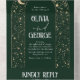Plongez dans la romance d'une soirée étoilée avec ce faire-part de mariage émeraude vert et or, où les rêves célestes prennent vie ! Ce design unique en forme d'arc capte la magie et l'amour de votre journée spéciale, l'enveloppant dans la mystique du cosmos. Il s’agit d’une solution tout-en-un de charme qui comprend une invitation principale avec une carte RSVP intelligente et détachable pour le plus grand confort des clients. Cette invitation compacte est un chef-d'oeuvre d'élégance et de simplicité, ornée de motifs célestes tels que lunes de croissant, étoiles tournantes, étoiles scintillantes, planètes errantes, constellations complexes, galaxies lointaines. Idéal pour des thèmes de rêve comme "Under the Stars", "Written in the Stars" ou "To the Moon and Back", il est conçu pour enchanter et ravir.