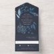 Invitation Tout En Un Mariage de cadre botanique bleu hiver Azure