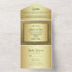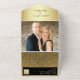Élégant, moderne, minimaliste noir et doré faire-part de mariage tout-en-un avec photo personnalisée du couple à l'arrière. Un choix parfait pour les mariages d'hiver contemporains ! Ajoutez votre photo, les détails du mariage et rsvp.