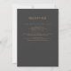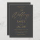 Célébrez votre mariage avec tout cela dans une seule invitation de script mariage or gris charbon. Doté d'un élégant arrière - plan gris fusain, d'une élégante typographie de script doré et d'un tout moderne en une seule mise en page, ce design est parfait pour les mariages de cravates noires, les fêtes du soir ou les couples qui aiment le style monochrome intemporel. Personnalisez avec vos détails de mariage pour une conservation sophistiquée.