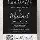 Invitation Tout En Un Mariage de code QR de script noir blanc