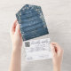 Invitation Tout En Un Mariage de code QR en bois bleu rustique