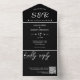 Simple noir tout en un seul faire-part de mariage. Personnalisez-le avec vos détails d'événement et votre code QR de registre mariage.