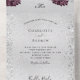 Un arrière - plan faux argenté, décoré de fleurs bordeaux et roses, éclaire d'argent. Personnalisez et ajoutez vos noms, monogrammes et détails mariages. Lettres de couleur noire.