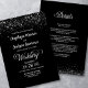 Invitation vos amis et proches à votre mariage pour assister et célébrer le début de votre voyage de toute votre vie avec cette élégante invitation noire. Le texte personnalisable vous permet d'ajouter vos noms, votre date de mariage et les détails nécessaires de votre célébration. Conçu pour le couple à faible budget, l'emplacement du lieu de réception, la demande de réponse RSVP, les détails de l'hébergement et toute autre information dont vos invités pourraient avoir besoin peuvent être inclus au verso de l'invitation, ce qui permet d'économiser de l'argent sur des articles de papeterie supplémentaires. Célébrez votre histoire d'amour comme jamais auparavant avec cette faire-part de mariage. Une variété de types de papier et de styles d'angle sont disponibles pour vos invitations uniques, ainsi que l'option de téléchargement.
