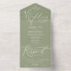 Sage Green et White Calligraphy Script Mariage All in One Invitation est le faire-part de mariage parfait sans besoin de pièces séparées stationnaires! La calligraphie Sage Green et le script blanc sont élégants et sophistiqués. Il possède une élégance classique intemporelle.