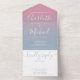Le tout dans un faire-part de mariage avec un élégant nom de script signature et des initiales monogrammes sur un arrière - plan sombre rose et bleu poussiéreux. L'invitation comprend une carte RSVP perforée qui peut être adressée individuellement ou laissée vide pour que vous puissiez écrire à la main les coordonnées de votre invité. Conçu par Thisisnotme©