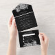 Invitation Tout En Un Mariage de script floral noir et blanc